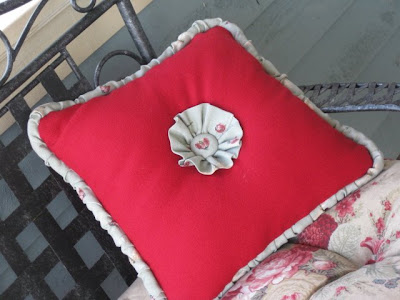 I found these at that mansion/flower shop/antique store in White Pigeon last weekend. There were pillows EVERYWHERE!! They were all handmade by a 90 year old woman. Boy, does she have her groove or what??! Zillions of colors and patterns. I bought a neck roll for my bed that has pearls and crystals and all sorts of bling. Handmade and only $23.00!! The pillows at Target cost more! She IS good!! And you know I am going to the big sale there on the 6th. Whoo Hoo! I am renting a U~Haul!!