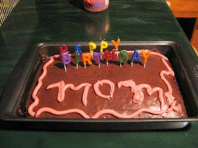 Abby made me this cake last night. We don't normally have cake at home because we order dessert when we go out for dinner, so I completely forgot about a cake and candles when we decided to skip the dinner. Well, I think she was appalled. She drove to the grocery store and got the ingredients and candles and made the cake. Isn't it cute? And so is she. And because I refuse to cook dinner on my birthday, we ordered sushi. It was a great day. :-)