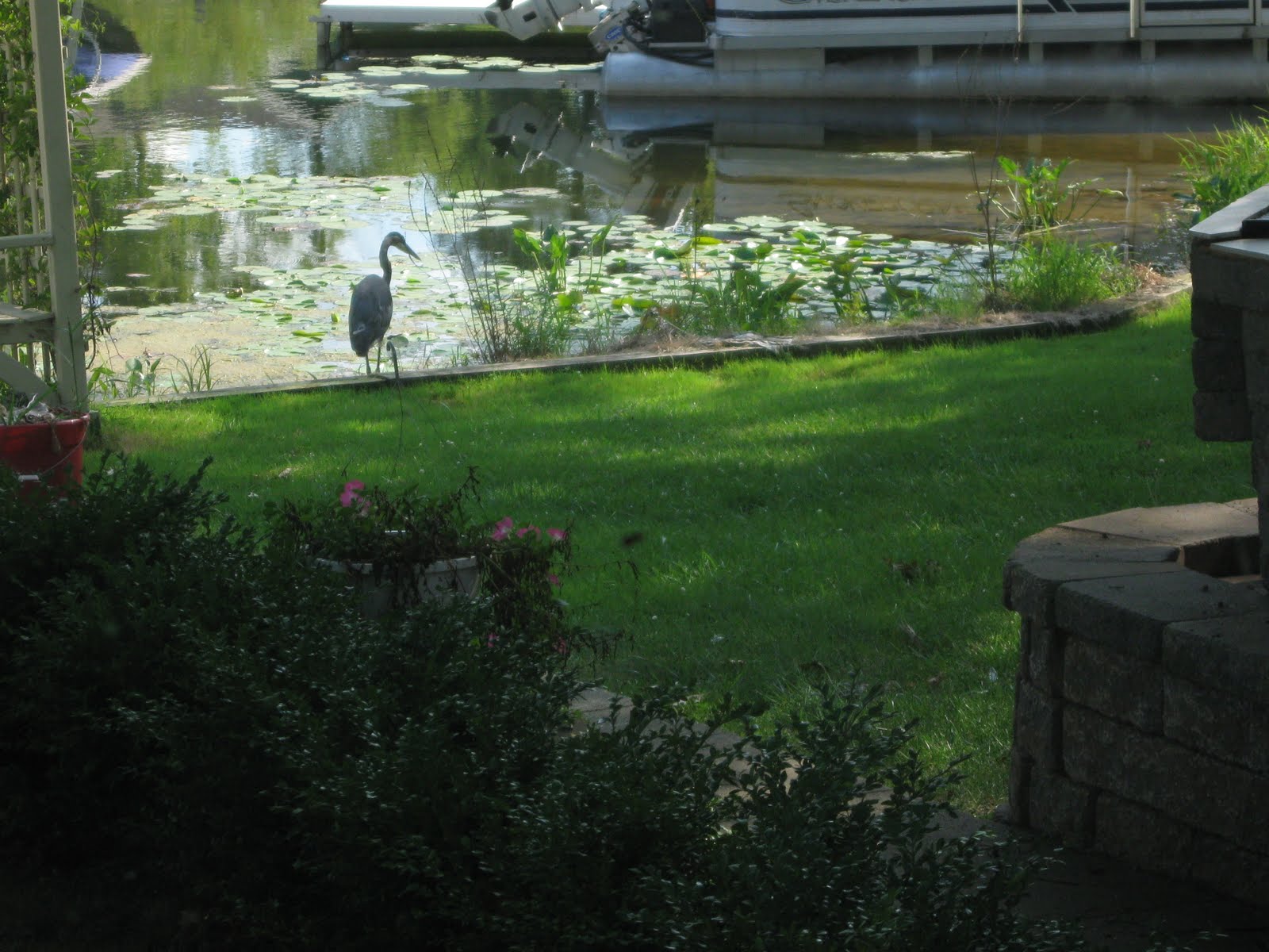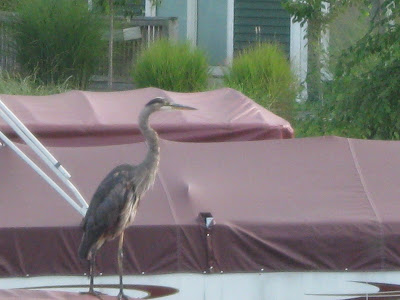 And here he is standing on top of the shore station. I think he looks majestic. I love how these great creatures walk with those long spindly legs. Beautiful. Now, on to South Haven...