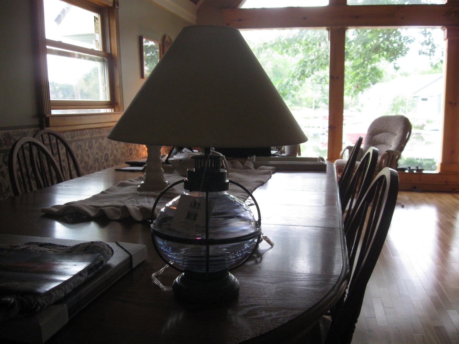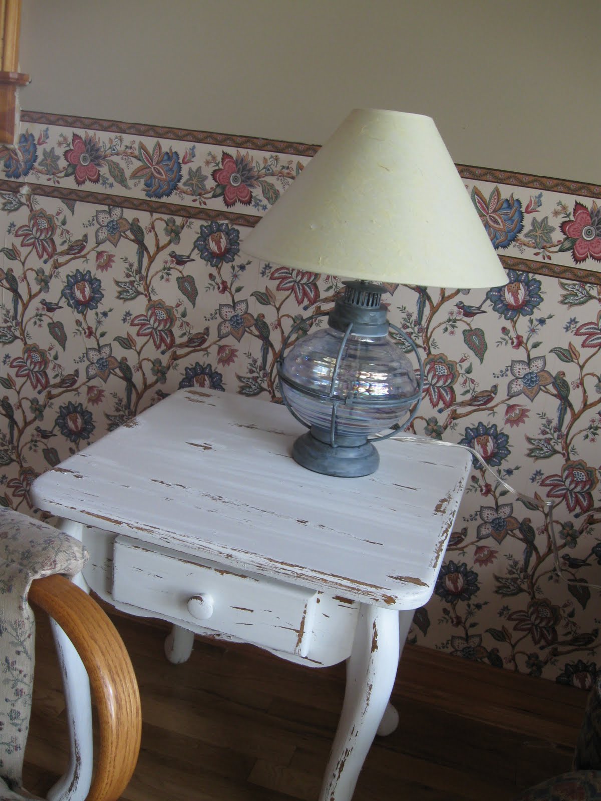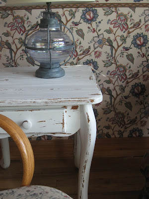 And finally, this lamp is going on an end table that I am getting ready to paint white as soon as I am done with this post. The glass is a soft silvery blue and reminds me of a lantern. I fell in love with it and it is finally motivating me to paint the old table. I'll do before and afters.