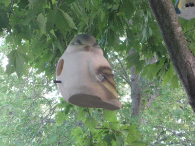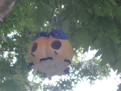 I bought these little bird houses at Steinmart last year and finally got The Husband to hang them. He's not very fond of ladders. Aren't the faces precious?