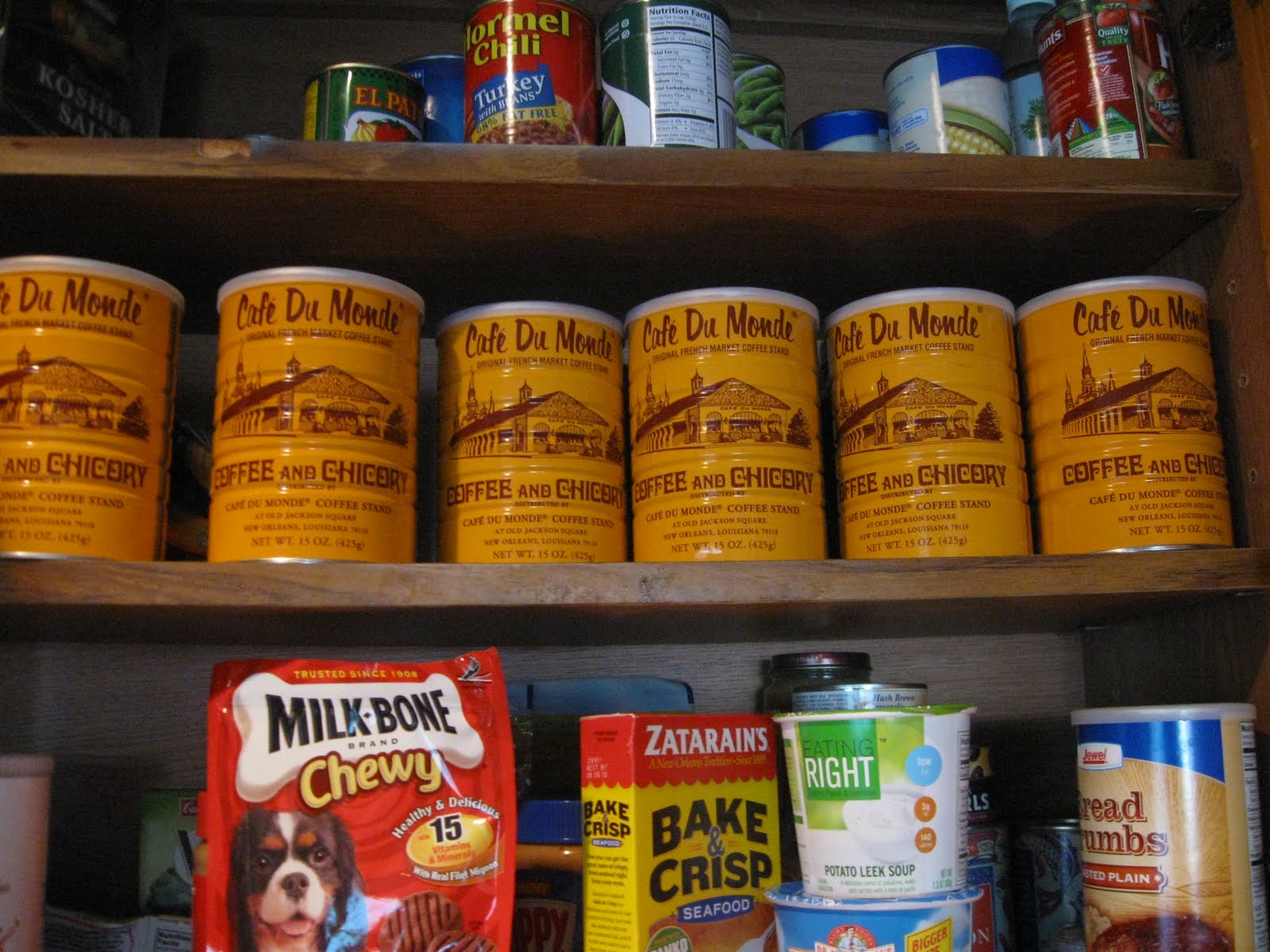 On a lighter note, when we were in New Orleans, we fell in love with the coffee at Cafe Du Monde. I mean, really fell in love. And good old Amazon sells it and so we have been stocking up every few weeks or so. I don't think I'll ever tire of it. Now the 3 cans on the left are his...