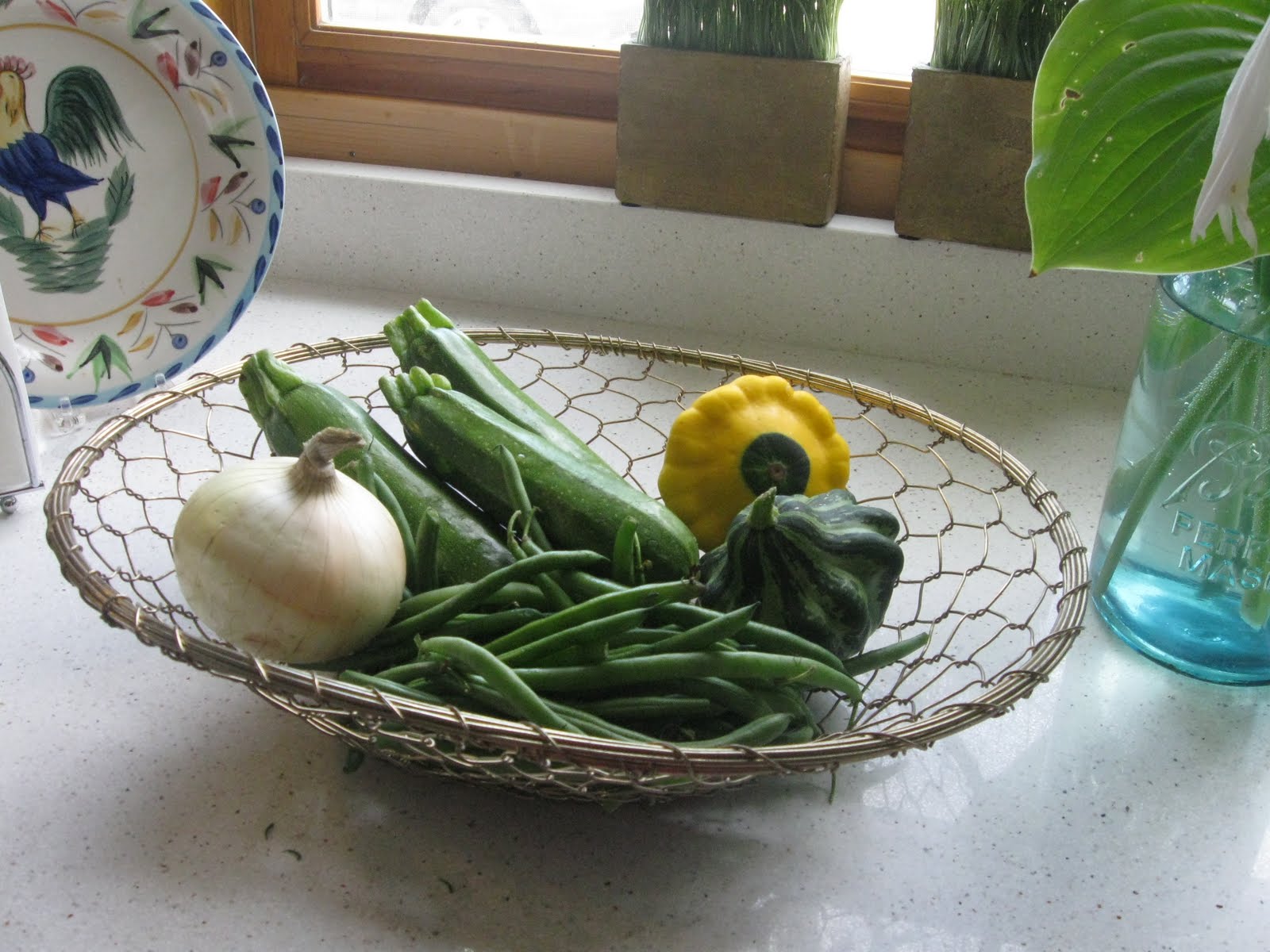 Finally, I mentioned that we were going to an Antique Fair in Indiana and that we did last Saturday. I started out with my camera and then put it back inside the car. It becomes cumbersome and I know that you have seen tents and vendors and people shopping before. We had a great time. I had the experience of the 'one that got away'; a beautiful white chippy cabinet that went to the ladies in front of me admiring it. We spent the rest of the fair looking for something similar and it didn't happen. We made up for any sad feelings by munching on Chicken sandwiches, ice cream and lemonade. I did find this neat mesh bowl {sans veggies} and really liked it. Perfect for fruit or sewing items. junk mail...