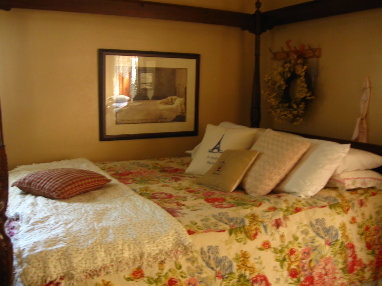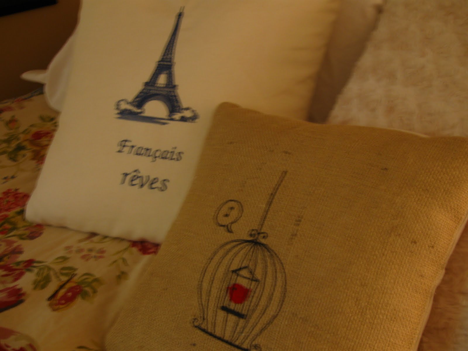 On the bed I have these two new purchases from Barb at The French Elements. I mentioned the tea towel she made me that was in my last post. You have to visit her for the neatest pillows and tea towels. They are well made and so pretty!