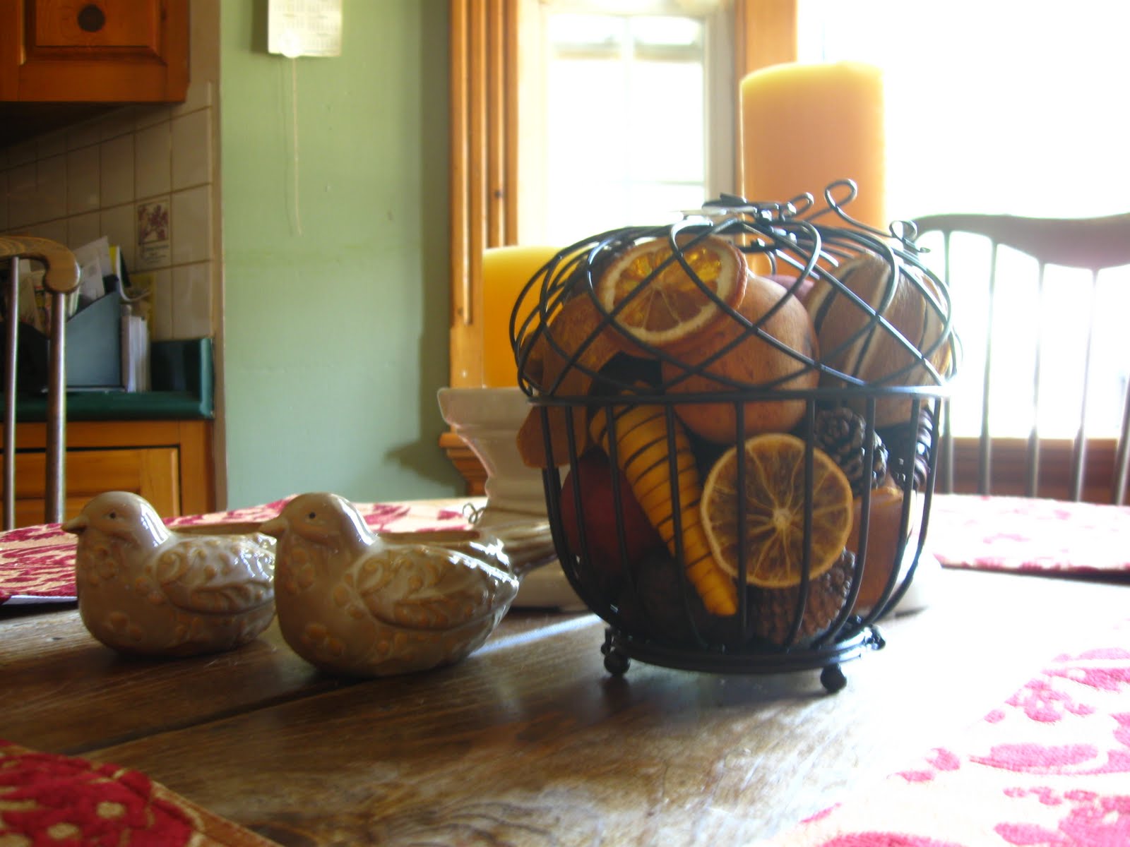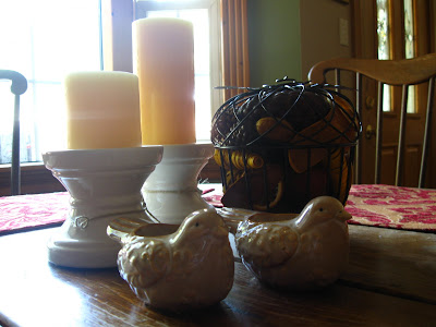 I also found this cute acorn there also and it looks good on my table. I put out some fall looking place mats, too. I haven't looked at the stuff I have packed away yet, I'm very slow in all that I do. A little at a time is good for me.