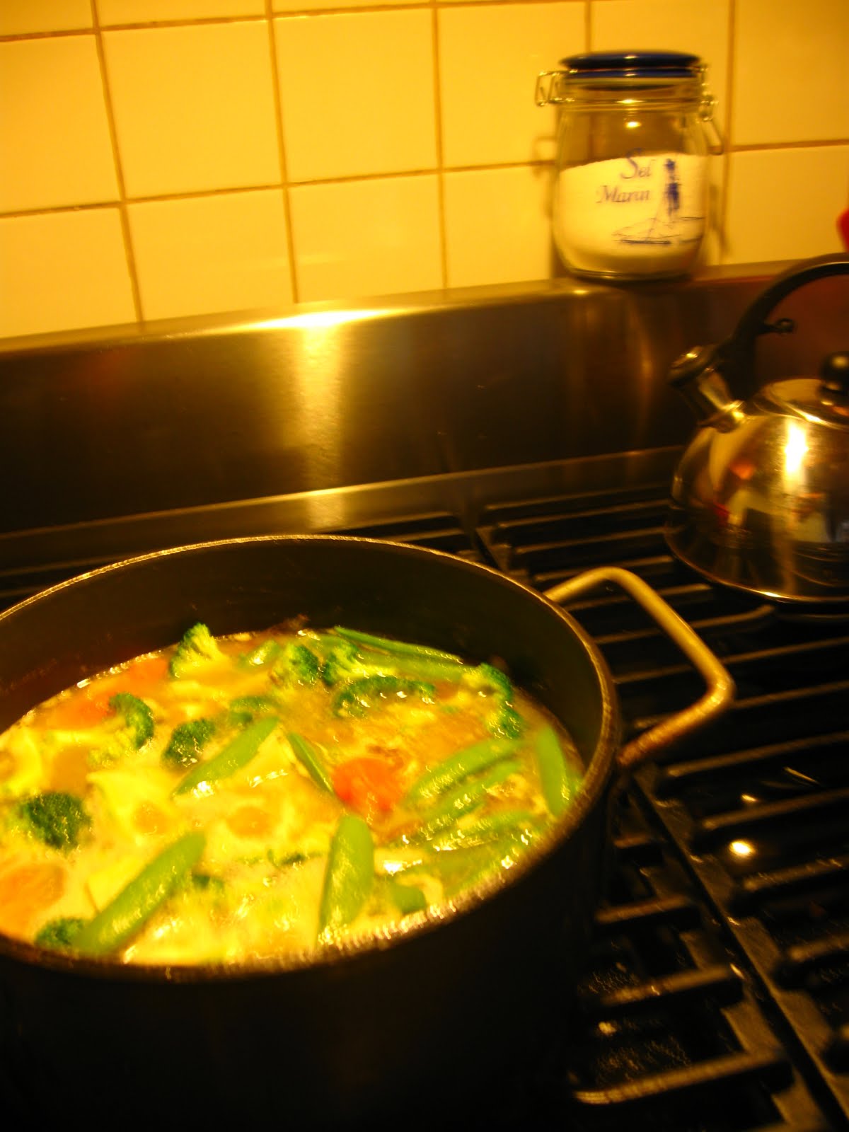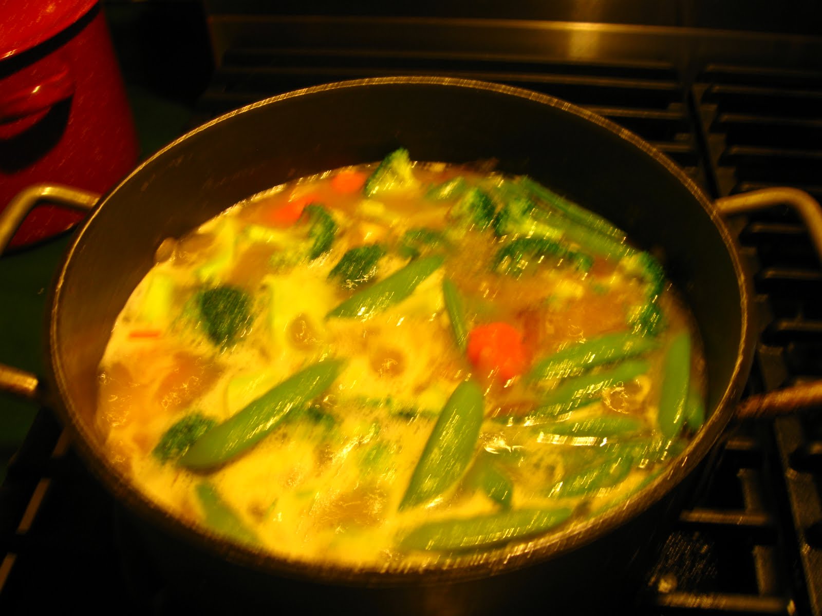 The lack of oxygen has really slowed me down. I haven't cooked all week, I love my carry out menu book. Yesterday I was just tired of sitting or lying in bed. I found a box of chicken broth, cooked up some onion and chicken in butter and olive oil, threw in some broccoli, carrots and sugar snap peas and made some chicken soup. Not exactly the traditional veggies, but it worked.
