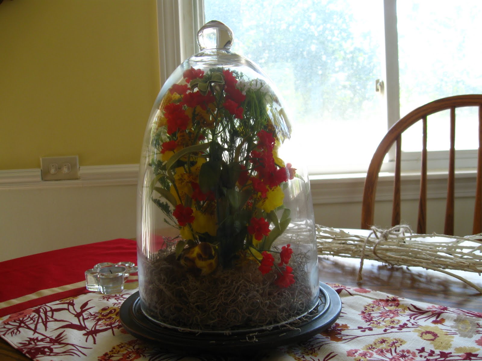 In honor of Marty's cloche party, I threw in a picture of a floral arrangement I made under a cloche. I'm not joining the party because I have shown this cloche before and I didn't have a post ready with anything else. It's always fun to go to the party and see all the ideas though.