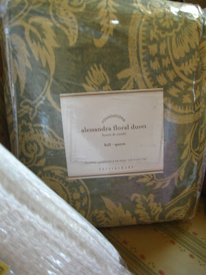 I am the Queen of shopping online and this time of year I love to sit with a cup of coffee and browse through my favorite online shops. I think some of the larger ones [Macy's, Kohls, Target...} know me by name. Since I started blogging I have also discovered Etsy shops and am loving those, too. My method is to make a list of all the things I fall in love with, and when the list is long enough, I get out my credit card and shop. That way the boxes seem to come at once in a steady parade and I feel like a kid at Christmas. Last week I did a bit of shopping, stopping off first at Pottery Barn. It's a rare occurrence that I pay full price at PB, but I fell in total and complete love with the blue and cream duvet cover that you see above. This is called the Allessandra.