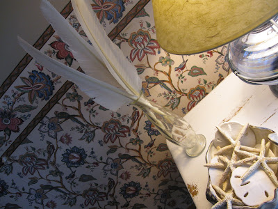 This is the duvet cover I have on my bed now. It worked really well through the summer with cream colored lace drapes, but I am looking forward to decorating in blues. This duvet is also from Pottery Barn Online where I found it in the clearance section for $99.99. It is named Leslie and since that's the name of my late sister, I thought it was meant to be.