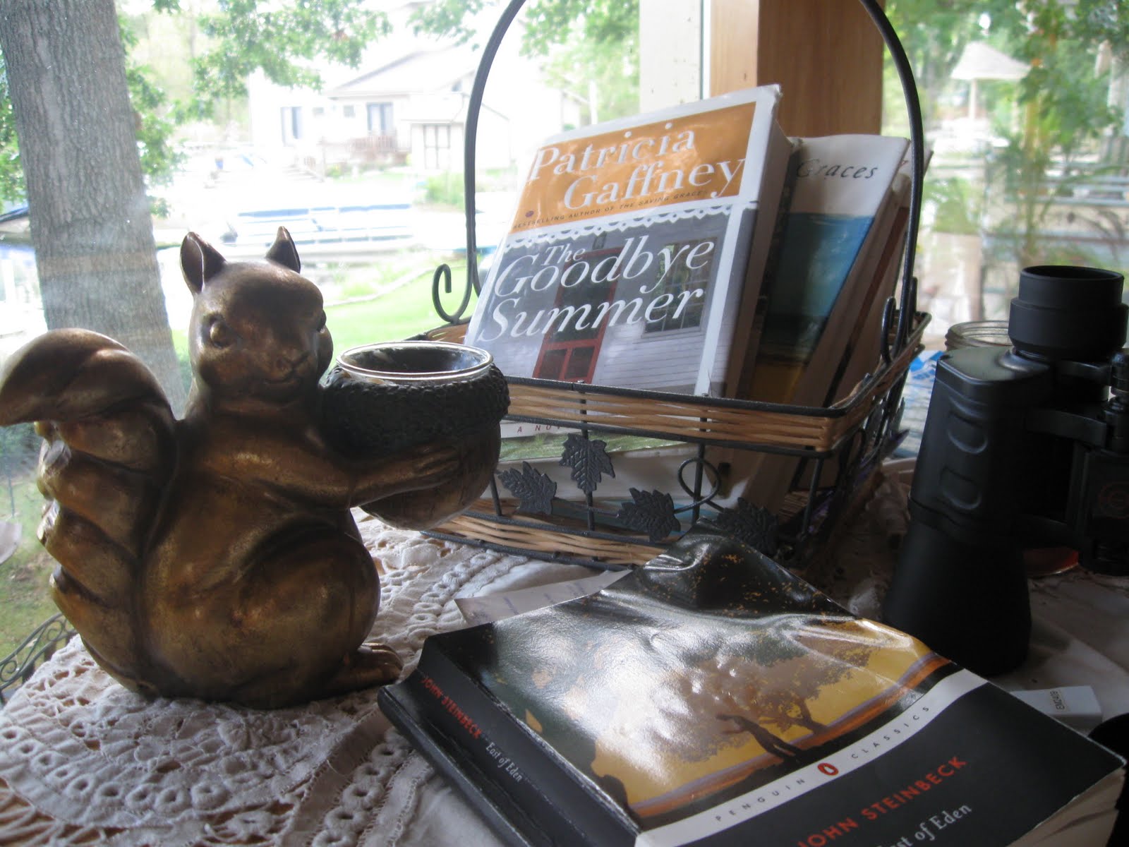 makes me smile and he is out year round. I have really been under the weather with asthma for the past 5 days. Usually it affects me when I have a cold, but I don't. To make matters worse, my doctor is on vacation and it doesn't seem his partner knows quite how to treat me {or doesn't want to treat me without seeing me, for which he has no time...see what I am getting to here?}. So I am doing as little as possible so I don't get out of breath; reading, watching t.v., and drinking a lot of strong coffee and tea, which really helps me breathe. I also do medicated breathing treatments every 4 hours and that helps a lot. Woe to me.