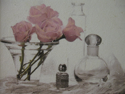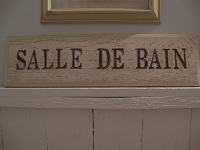 My posts revolve around my pictures {I have taken all of these}. They get me talking, so to speak. So today I was relegated to walking around the house, taking pictures here and there and I edited them to those only in the bathrooms. Pretty weird, huh? The bathrooms in my home are just about the only rooms that aren't cluttered, I guess because they are small. I keep only pretty things in them without letting them become too feminine. So I'm very fussy about what I put on the walls and counter tops.