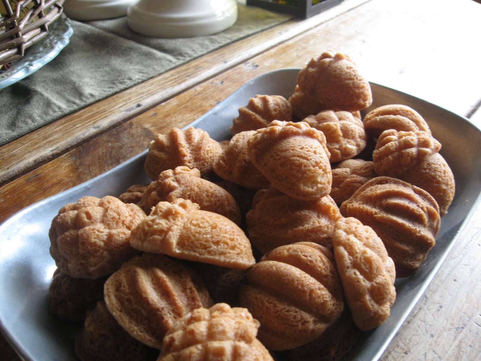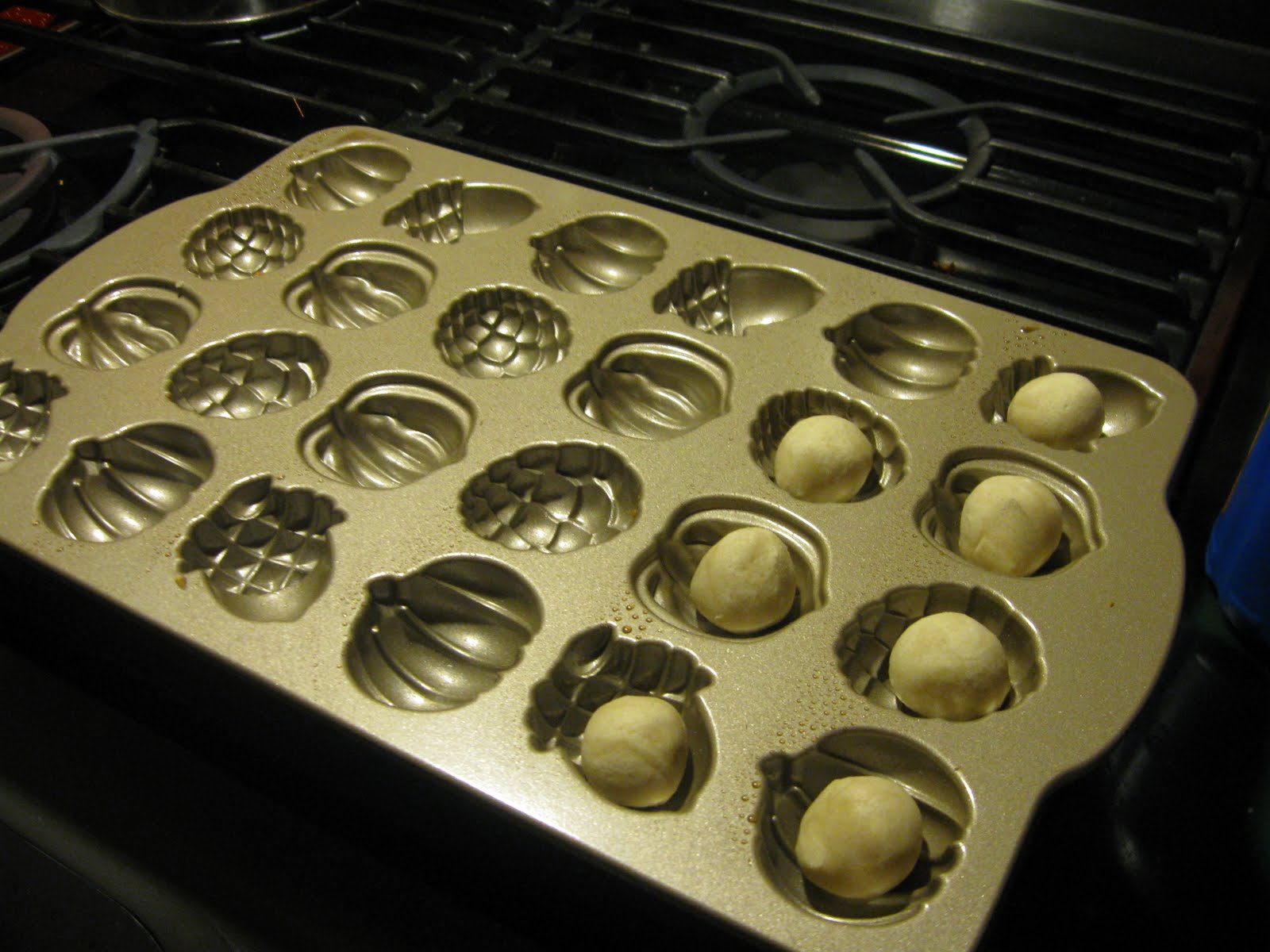 The pan is not recommended for making anything cake like. It came with a mix for Butter Pecan Bread which was perfect. Any type of quick bread would be great. This time I thought I would crank it up a notch and experiment with cookie dough. Pretty brave for someone as pathetic as me. I just rolled the dough into 3/4" balls and popped them in the pan. Easy as pie, er...cookies.