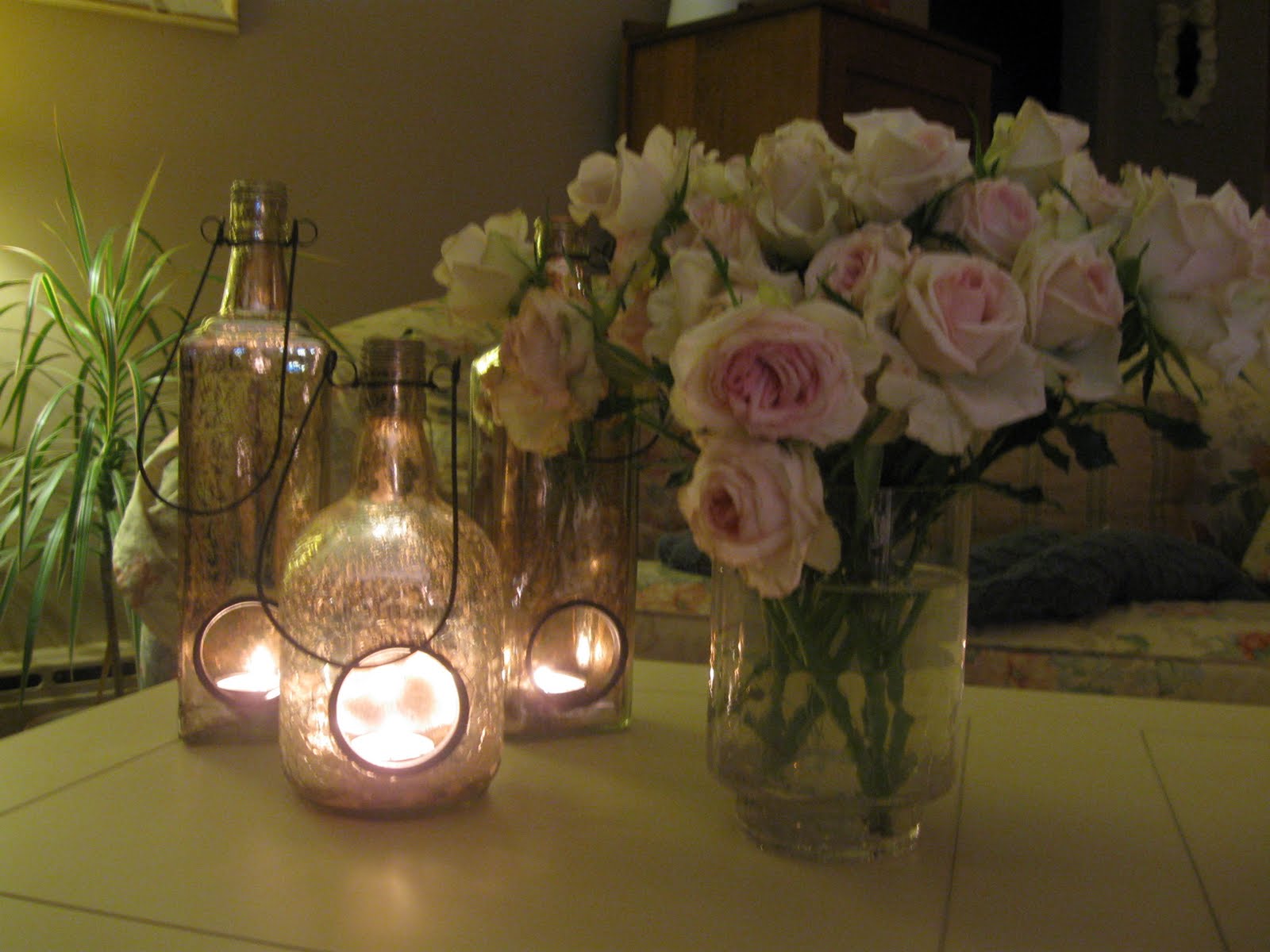 Bottles and candles are from Wisteria.