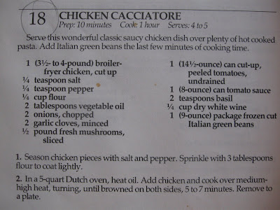 This week I made Chicken Cacciatore and it turned out great. Enlarge the pictures and you will have the recipe.