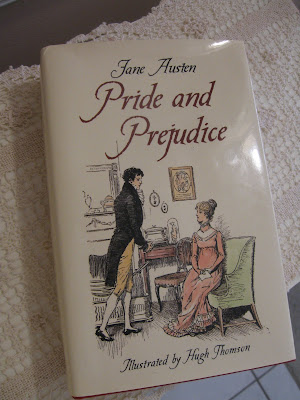 I've had this book for awhile now...I feel like I am the only person in the world that hasn't read it or anything by Jane Austen for that matter. I flipped for this copy because it is a Keepsake Edition with gorgeous illustrations, as you can see by the cover. Anyway, I started it Monday and I am halfway through it...I can't put it down. The Husband is happy to see that I have moved away from my computer and I can now be found lying around with my nose in a book. So have you read it? Did you identify with any of the characters? I'd love to say I am an Elizabeth, but I don't think I really have her sense of adventure or her spirit. Then again, Jane is almost a saint. Well, she's kind and thoughtful and never says a mean thing about anyone, maybe we could all strive to be like her. Well, let me know if you have read it or any other Jane Austen books. And I understand there is also a movie...who is in it? I am speed reading so I can rent it.