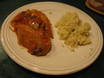 I served it with couscous but rice is good, too. And a small salad. I sort of threw this on the plate to take a picture as everyone was anxious to eat. I guess that's a good sign. Join Carmie at The Single Nester to see what's cooking at her place this week.