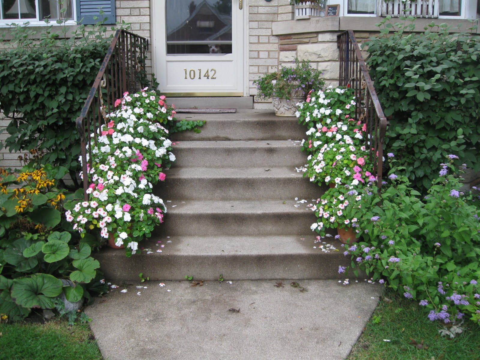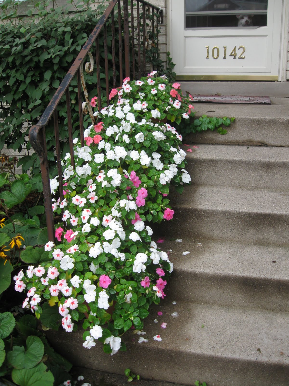 Jane -Your flowers are unbelievable! LOVE hot they look like carpet on the steps!