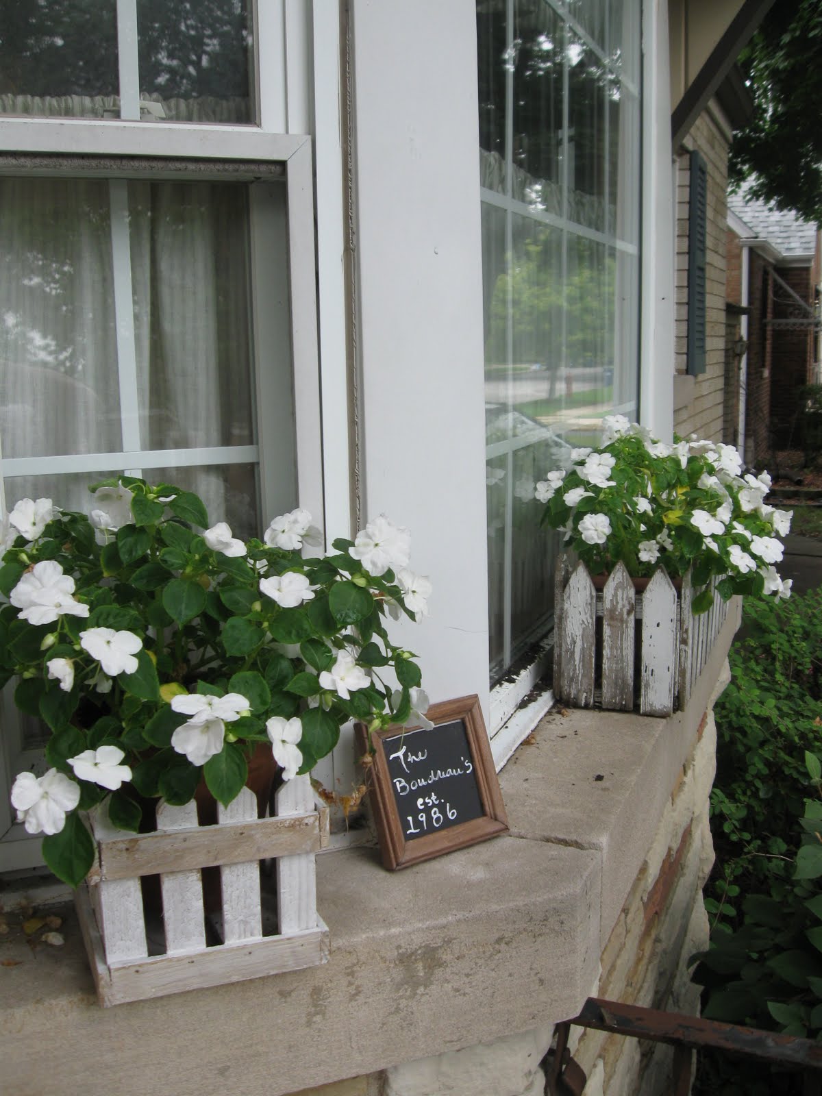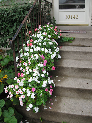 I could just sit on your steps for hours watching the world go by enjoying your impatiens. I also love your picket flower boxes. very pretty.