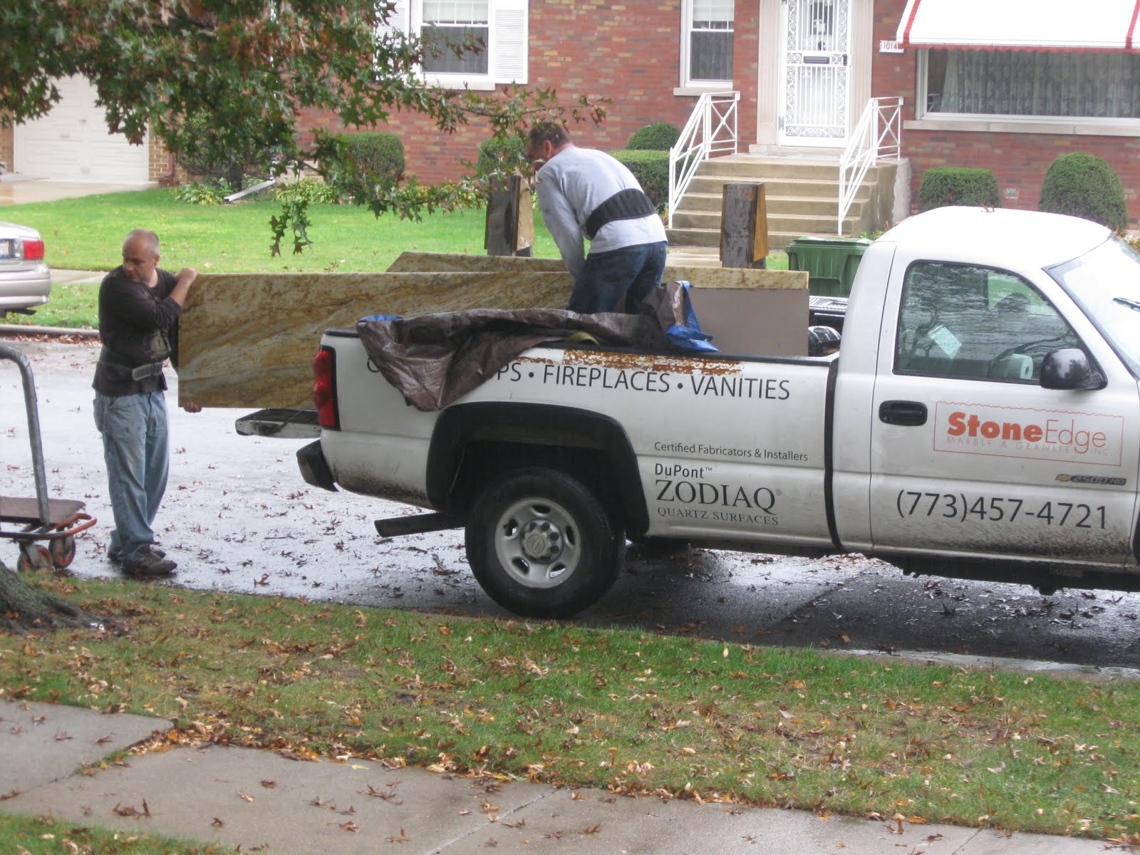 Meet The Fabricators. Peter and ? There they are taking the granite tops off the truck. And the final reveal...
