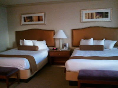 Our room at the Rio is plain and simple and clean. We stay here free with all the comps we win on our rewards card...it's complicated. but we stay here pretty often. It's pretty wild here with people running around in masquerade outfits; masks and feathers and the waitresses in teeny tiny clothing. Yep, makes you feel a little bad that you are eating eclairs everyday.