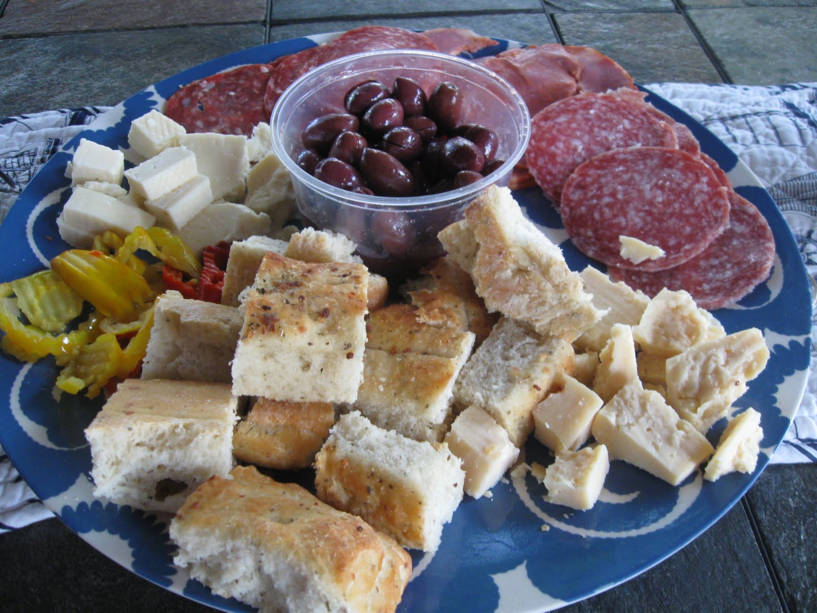 We brought provisions with us...Italian meats and cheeses and fresh bread and just rented a movie Saturday night. Of course, it put me to sleep. Somehow, The Husband manages to stay up late and get up early.