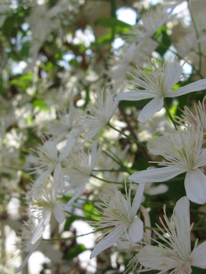 Our fall clematis is in full bloom on the arbor. It's beautiful, isn't it?