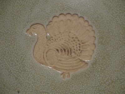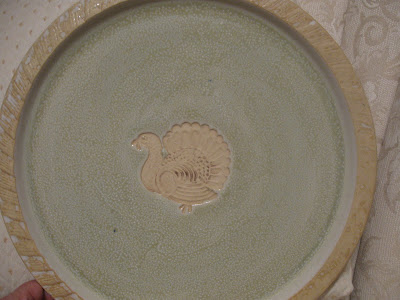 This is my Thanksgiving and Christmas plate that we serve our turkey on. I've had it since we were married. I love the subtle color and how it works for both holidays. Isn't that turkey darling?