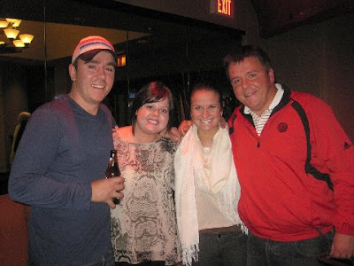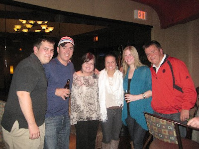 After the proposal, he led her downstairs for what she thought was drinks and dinner, but surprise...the bar was filled with about 40 family and friends! Here are my four. This would make for a great Christmas card if it weren't for someone wearing a baseball cap and holding a beer.