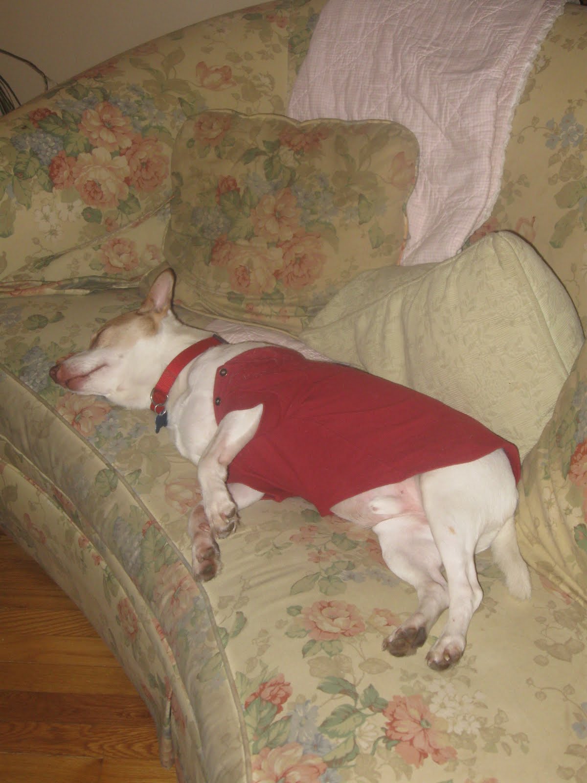 After company left, I found Milo sacked out on the couch. Yes, we dress them up on holidays! He, Layla and I went to bed shortly after.