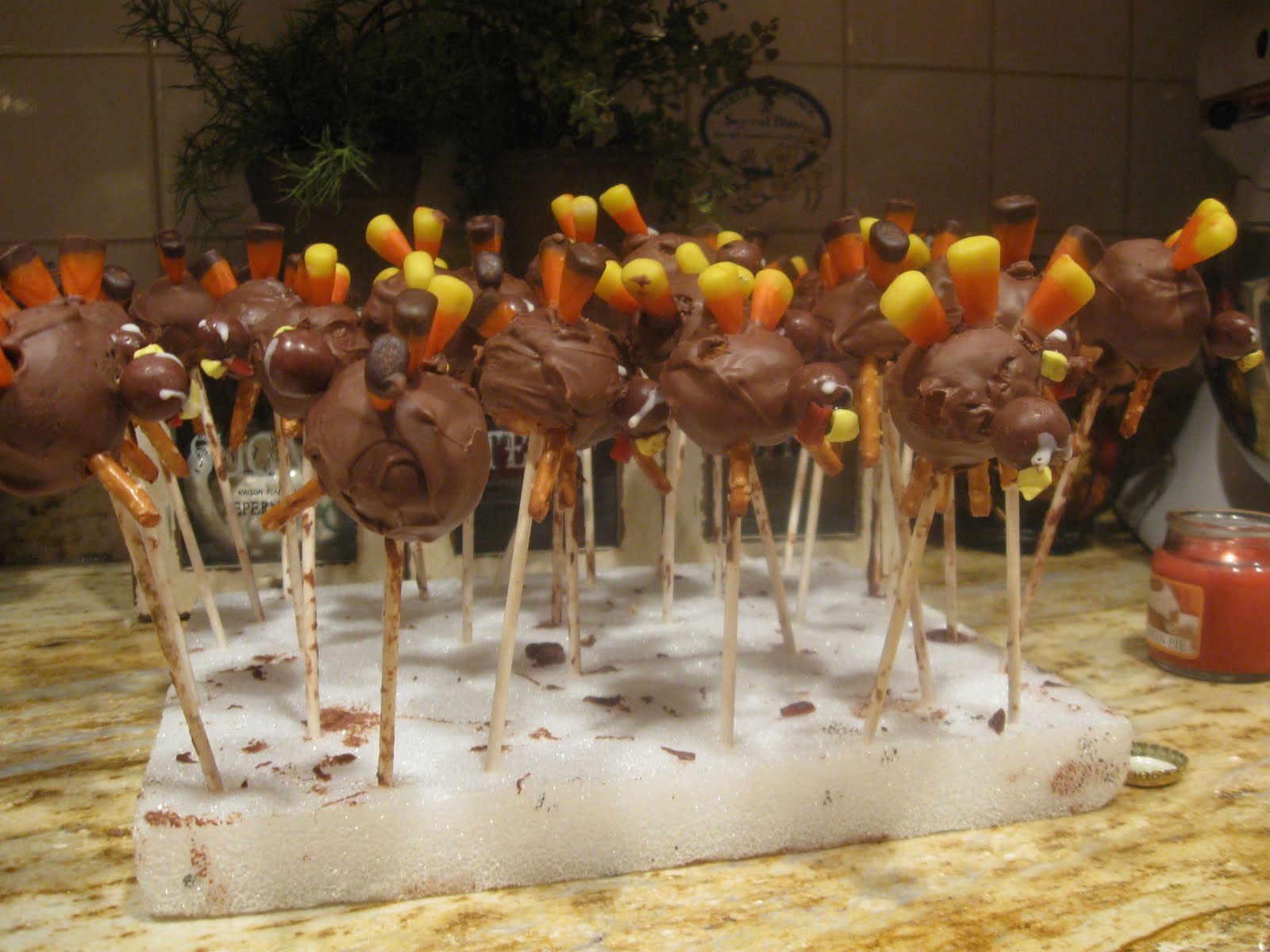 We had our annual best dessert contest and the hands down winners were my nieces who made these little turkey guys. The body is cake dipped in chocolate and decorated with candy. They were darling. Runners up were my nieces, Liz and Grace. Congratulations, girls.