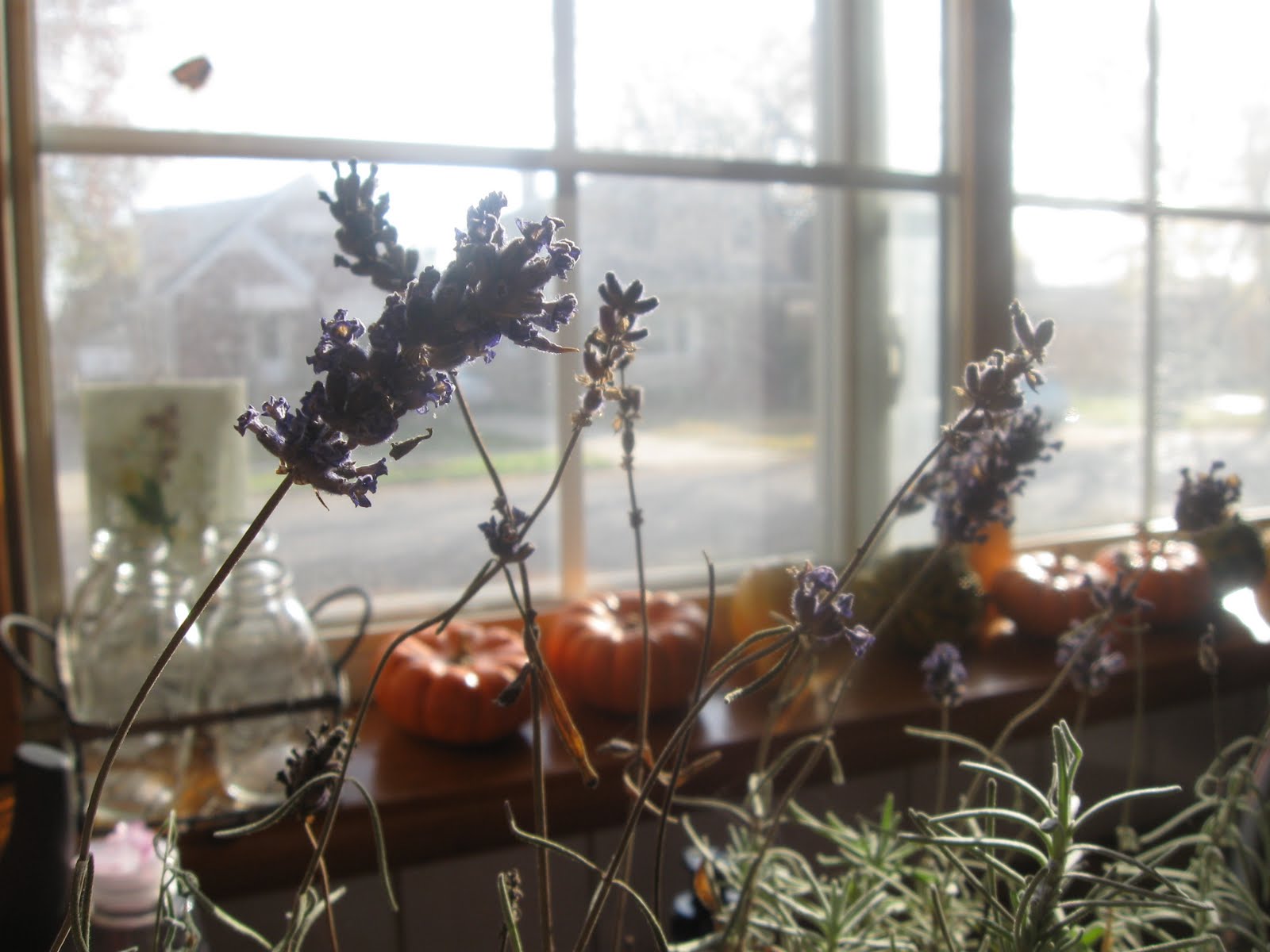 This is the lavender plant that I decided not to put in the ground this fall for fear it wouldn't root well enough before the ground froze. It's doing okay in my garden window. I water it every two weeks, as I read that they like dry soil. I have gotten advice that it will live okay in my house until spring and then I got another piece of advice to let it go dormant in a dark cool place. I suppose I would have to water it, too. Any thoughts on this? I get really emotional over this sort of thing.