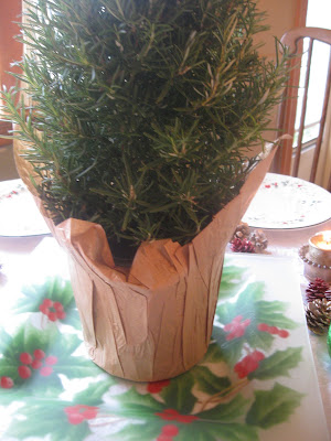 This was my centerpiece. I found a rosemary plant last minute and thought it would be perfect. Believe it or not, the tray it sits on was something I have had for years and don't remember where I bought it. When I cleaned my kitchen out for the remodel, I was going to put it in the box with things I wanted to give away. I'm happy I didn't because it goes with my holiday dishes perfectly.