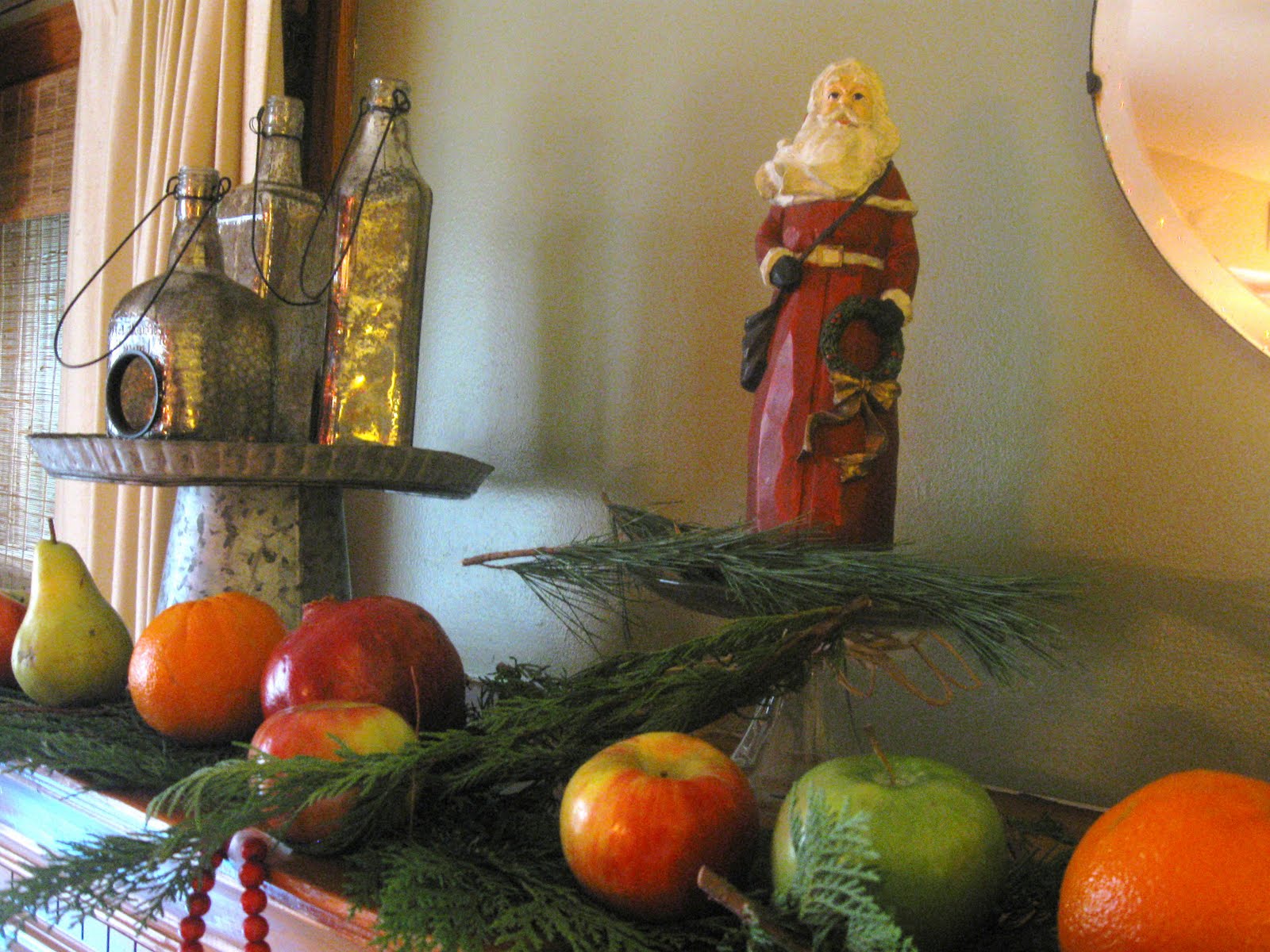 Just lovely, Jane! I like the fresh fruit & greenery, not to mention that neat old world santa.