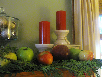 Douglas is looking pretty good right now, Jane! Your mantel looks so pretty and I love that you use real fruit with your fresh greenery. I'll bet your glad you got everything all set.