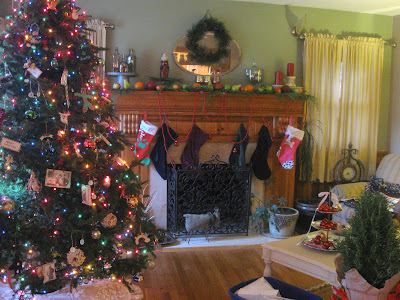 Mmmmm...your living room sure looks warm and cozy for the holidays, Jane. I bet it looks even cozier at night with all the candles, and lights lit. Douglas looks pretty spiffy! xxxooo