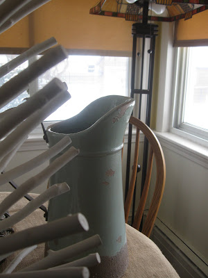 I am loving the new blue pitcher I picked up...it is HEAVY! Not sure where I am going to put it yet. It looks like my family room furniture will be coming mid February but the coffee table is back ordered until April. That's a bummer, people use their coffee tables so it is going to be a big blank spot for a few weeks. I'm not sure if I will wait until then for the full reveal or not. Shall I tease?
