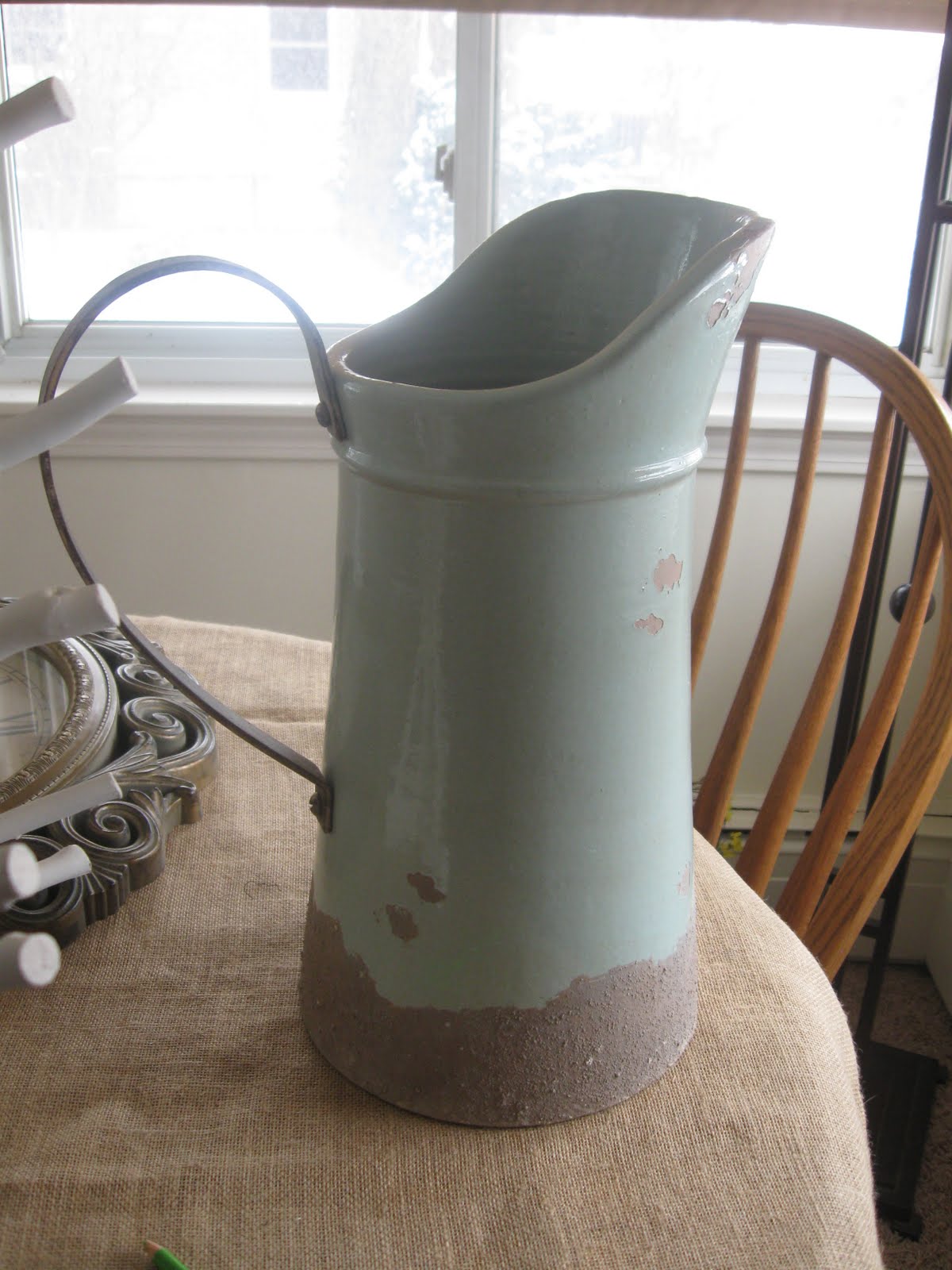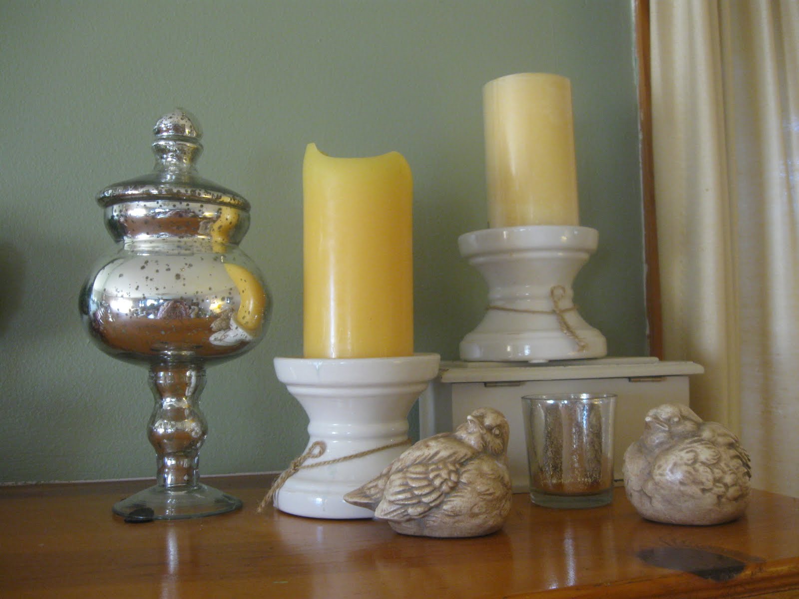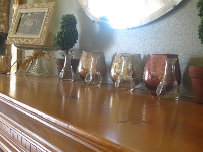 I found the mercury glass piece at Emily's shop. Love at first sight. I kept a lot of mercury glass out of my Christmas bins to use year round. It's great for a sparkle here and there.