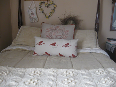 I hit a few white sales and found this comforter at Kohls. No coupons but it was marked way down. If you asked me months ago if I would ever have so much brown in a room, I would have laughed. This is a soft brushed corduroy with a sheep skin reverse side. The dogs are loving that part! The throw is from Pottery Barn, my son gave it to me as a birthday gift last year. I love the texture of all of it.