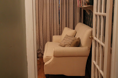 I'm still waiting for the new furniture so Emily and I are trying to reppurpose things in that room into other rooms. I find her in the almost empty family room quite a bit, looking around, measuring...things that designers do. I'd like to think of it as a collaboration, I told her what I wanted and she found it. She has it all arranged in her head.