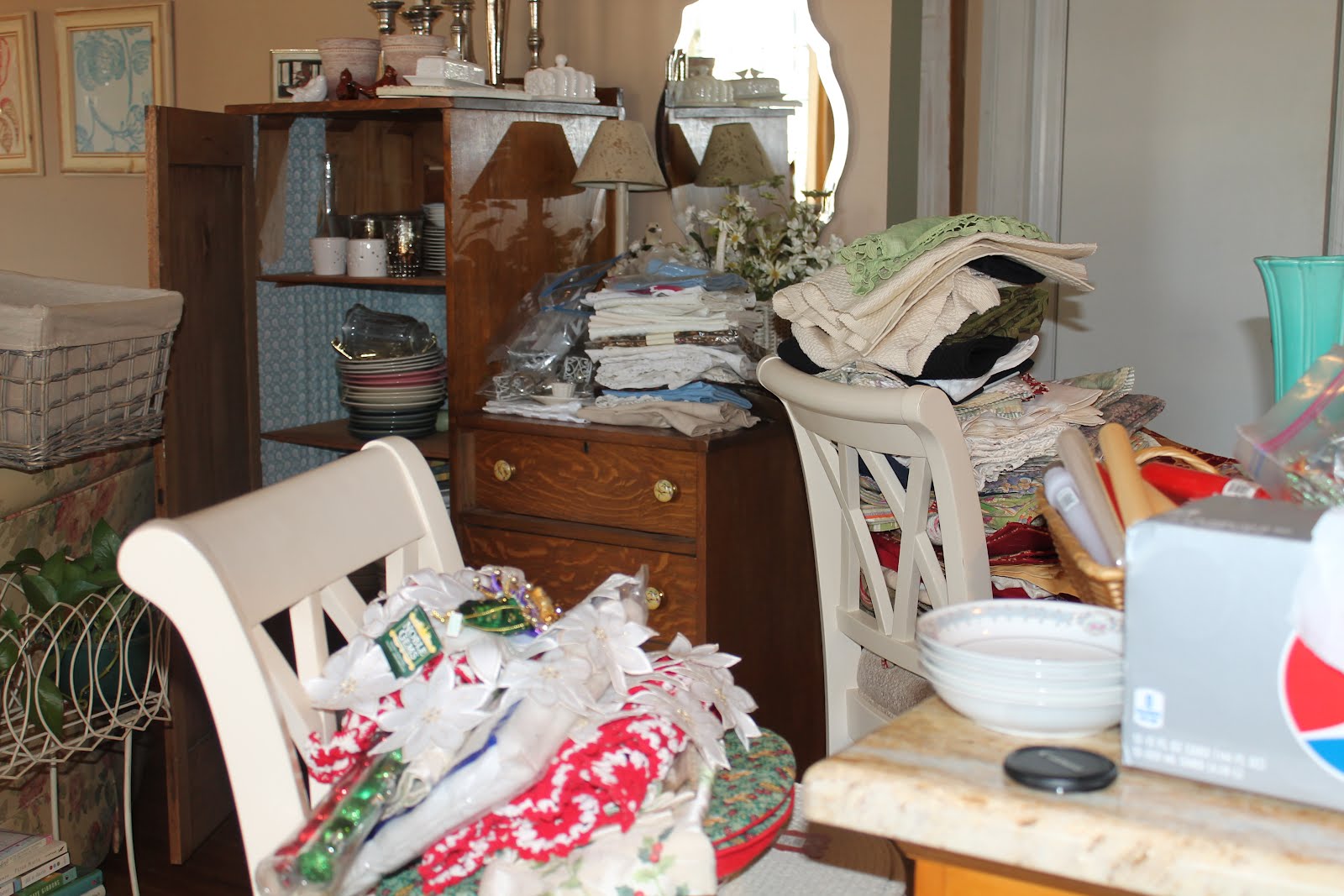 I usually like to open my posts with a pretty picture, but that's not happening today. Yesterday I finally tackled a cabinet that was driving me up a wall. It holds all of my runners, tablecloths, place mats, napkins and some random vases and pieces of china. It was actually holding more than it was meant to hold and everything was unsorted and getting wrinkled. It had been on my To Do list for quite a while.