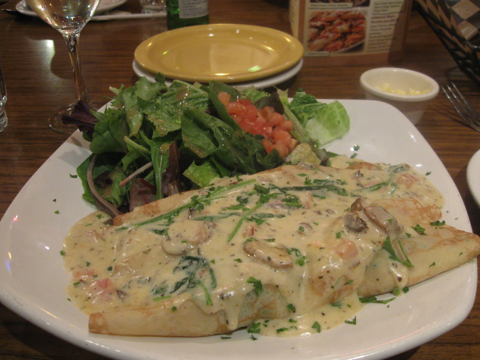 chicken crepes with mushrooms and a wonderful sauce.