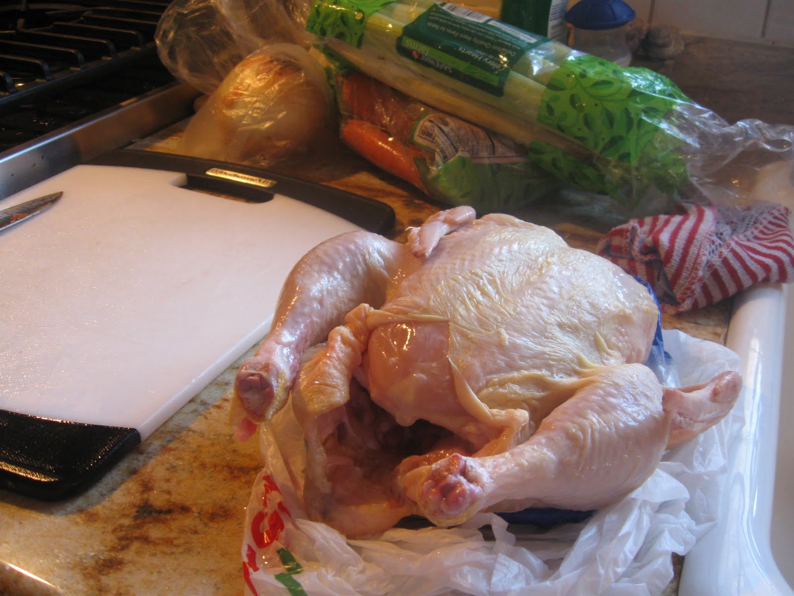 Well, this is the start of the Chicken stock I made from scratch the other day. It really was fun and I loved how the house smelled.