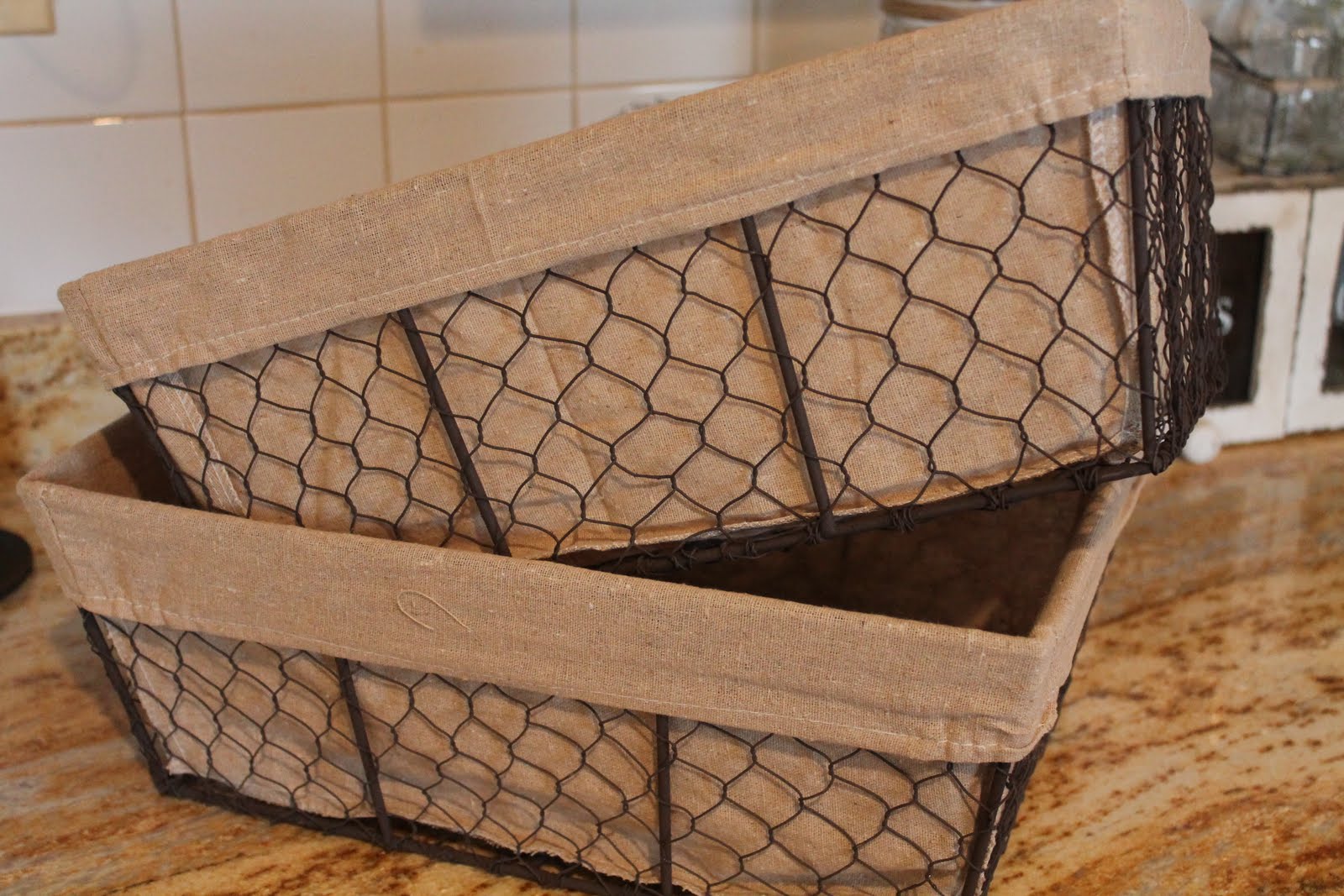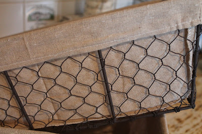 Don't you love chicken wire? My new coffee table {not delivered yet} has a lower shelf and I thought the larger baskets would look cute underneath holding magazines and what not. Can you see why I love baskets?