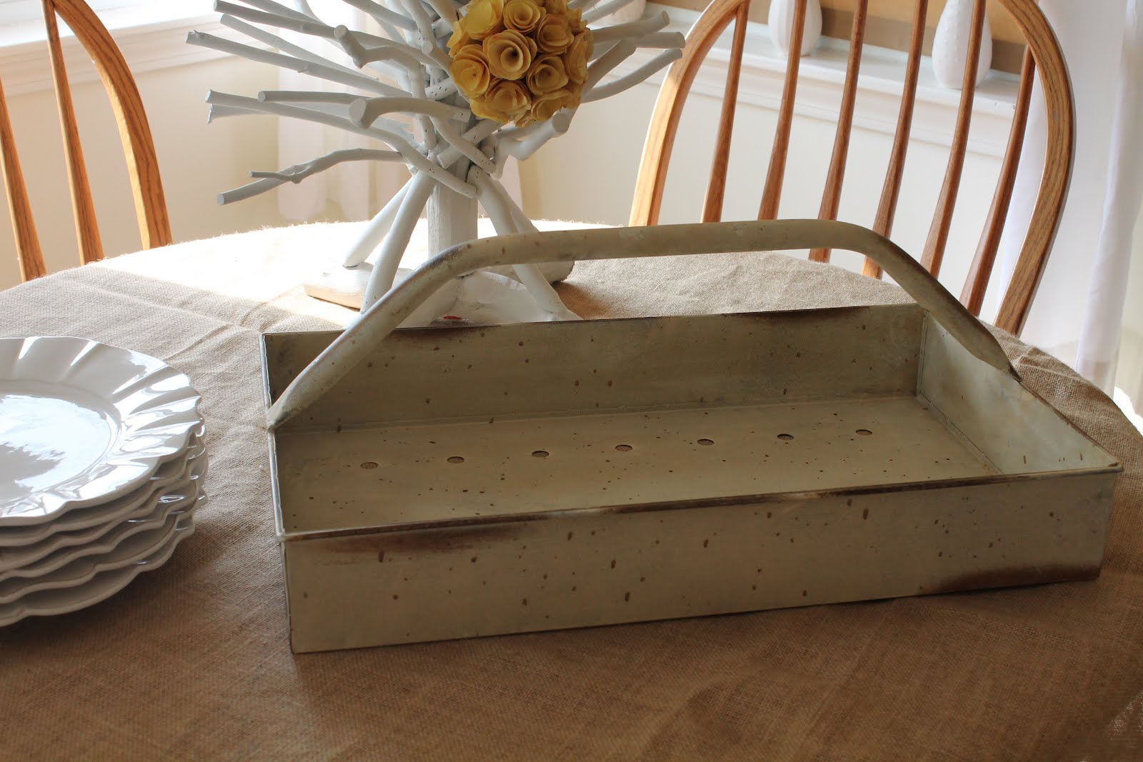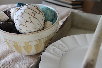 I found this tray at a website that is new to me, Antique Farmhouse. It's called a bulb tray. I haven't figured out what to put in it yet, God knows I have enough dried hydrangeas to go around.