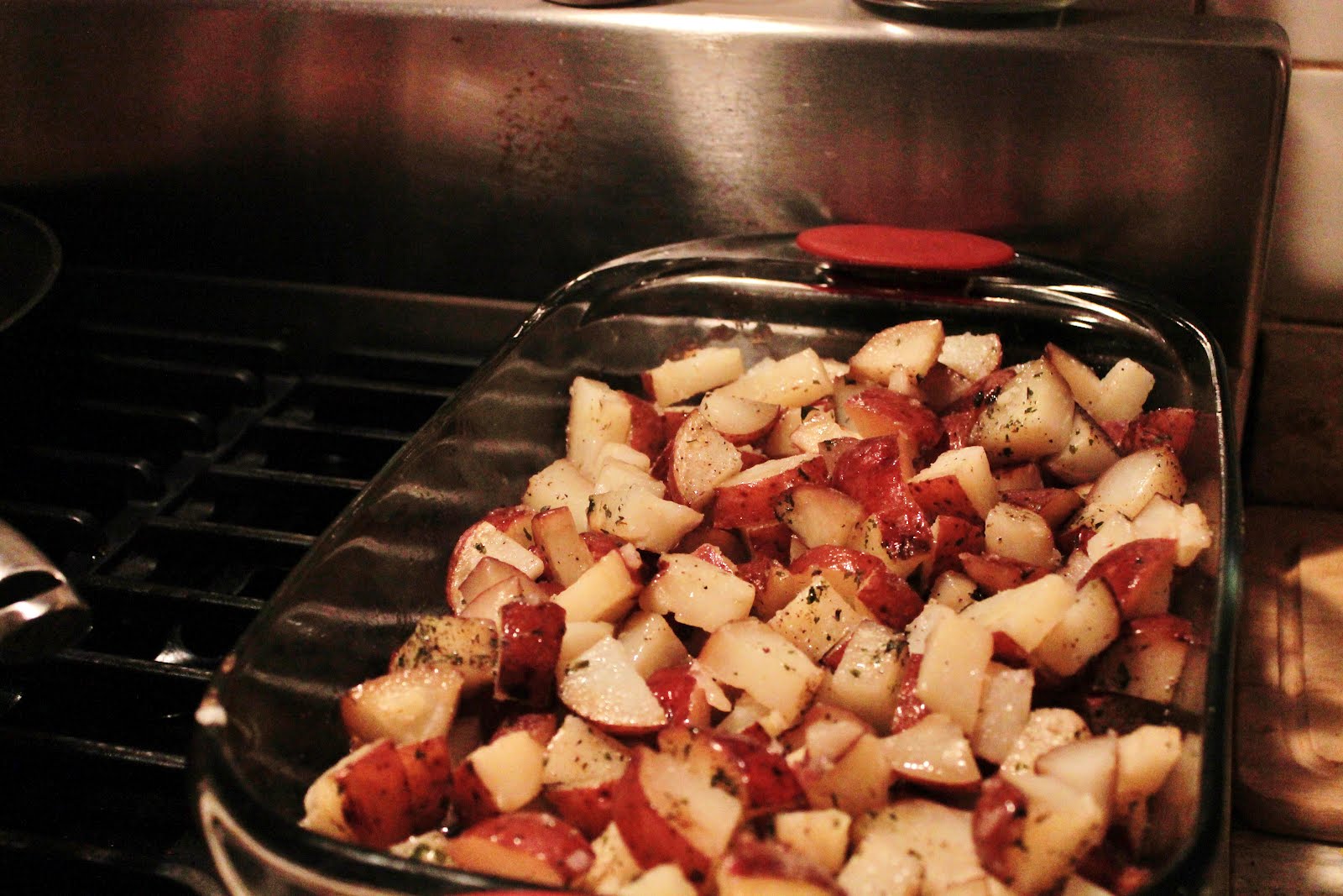 I also made potatoes roasted with rosemary and butter. Corn, a simple pasta salad and a loaf of French bread finished off the meal. We had cheesecake for dessert. I usually set the table even if we are having a buffet, but this time I just stacked the plates and silver.