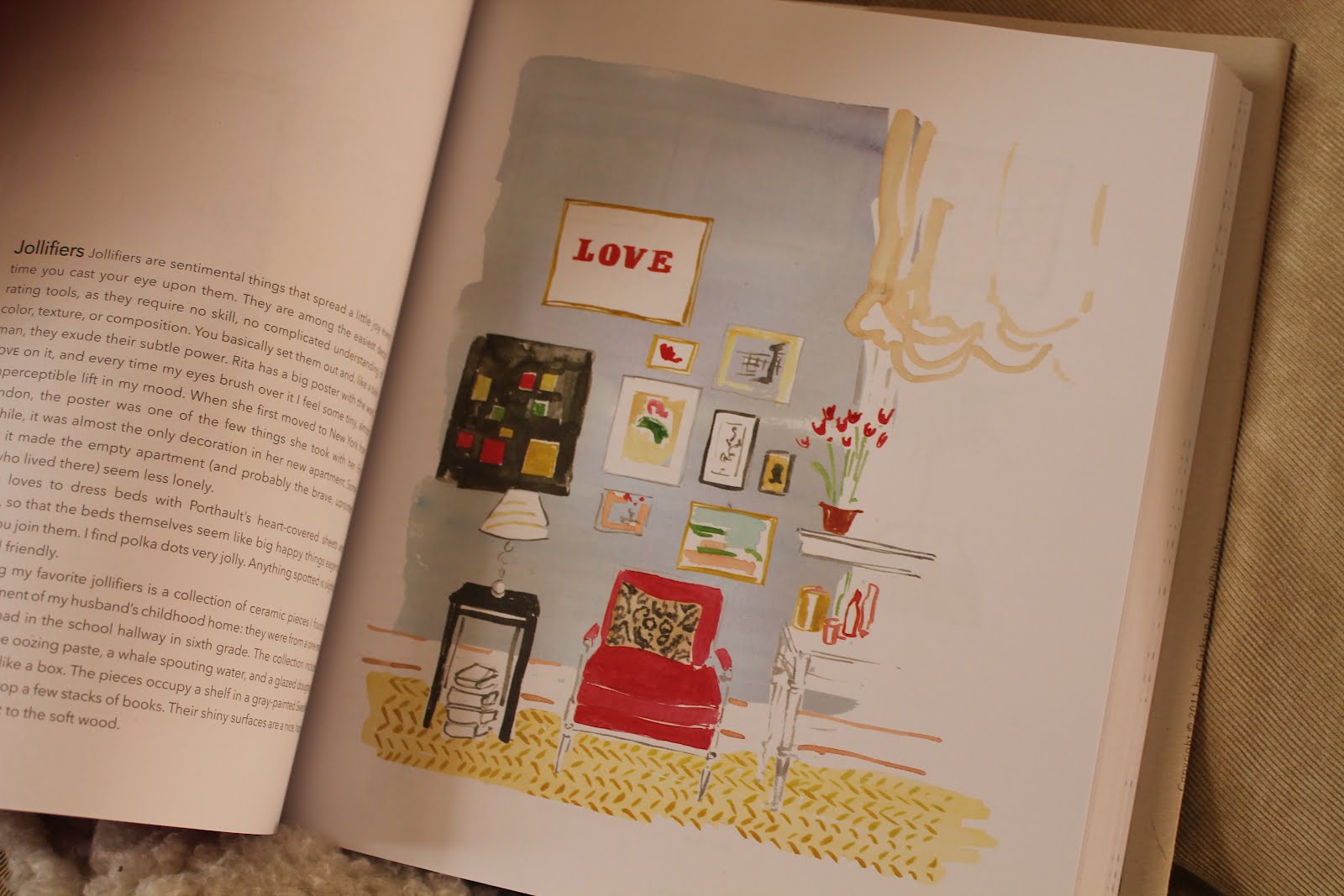 "...witty and wonderfully useful little essays. You'll learn what to look for, whether you're at at a flea market or a fancy boutique~or just mining what you already own." How could this not draw you in to buying this wonderful book! I originally saw it on Denise's blog, she won it in a giveaway and my curiosity got to me. So, I looked it up and Amazon. Once it came, I read it in two evenings. Written by the editor of Domino magazine {which sadly no longer exists}, there are no glossy pages here, just lots of advice and beautiful watercolor illustrations. This would be a nice addition to your collection of decorating books.