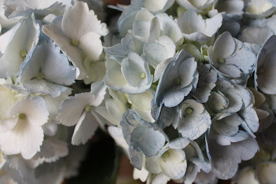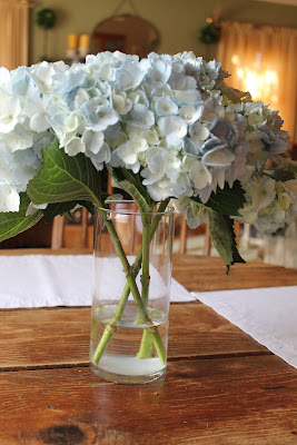 I found these pretty hydrangeas at a little grocery store. I don't usually shop there because it is so small and the prices are high, but they do have a nice floral section with things I don't expect. I found my rosemary plant there {which died...sob}.