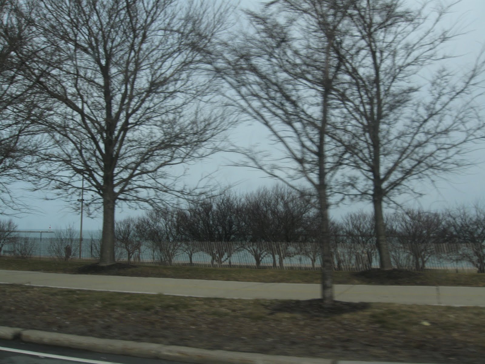 We took Lake Shore Drive in. It's hard to see Lake Michigan but it's there and very cold looking.