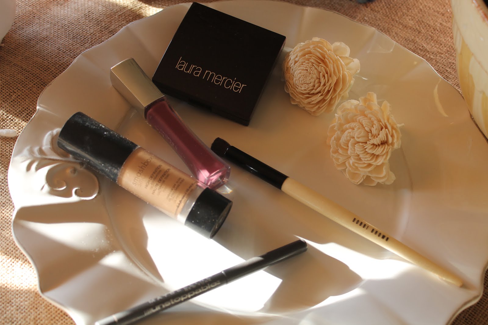 I wear so little most days, I probably am not qualified to give advice. But I thought I'd pass on to you some of the things I have in my make up bag and we could go from there. These are some of the products I love. I have very pale skin and if I could change anything, it would be the purple colored circles I have under my eyes {even if I get 12 hours of sleep!}, and maybe my freckles. So, for everyday I wear concealer and a little powder. If I am going out to dinner or a party, I wear foundation, too. Smashbox is my favorite. Back to everyday...I really have a love/ hate relationship with mascara, I despise taking it off at night. So my trick is to wear eyeliner. I use gray so it is not so obvious and it adds a little color. If you keep it close to your lashline, it looks like you have thick eyelashes and you don't have all the hassle of putting on and taking off mascara. My all time favorite eyeliner is Maybelline Unstoppable in Pewter. If you have brown eyes like me, it adds a tiny pop of contrast.