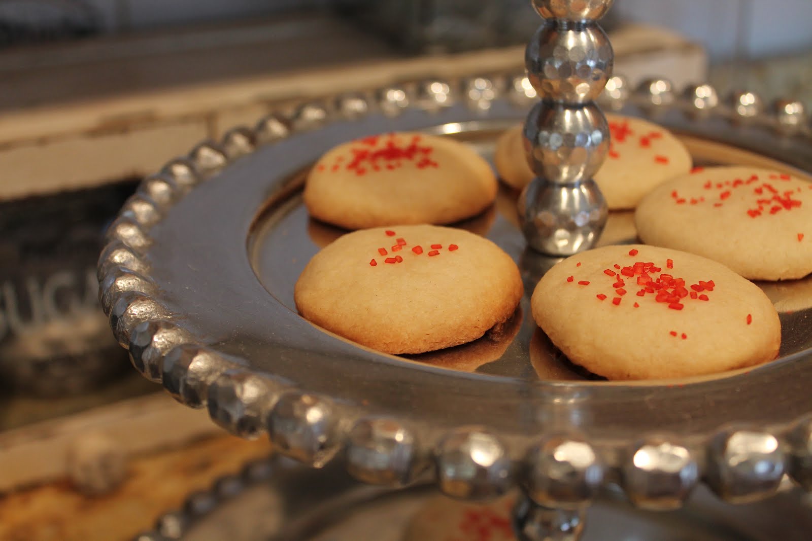 Today the sun is shining after days of gloomy weather...I hope it stays like this for awhile. Valentine's Day has come and gone. I hope it was a special day for all of you. The Husband brought home a sweet card, a chocolate rose and a gift card to Starbuck's. He knows me so well and he knows I love gifts! I didn't bake anything special as I usually try to do, but yesterday I was in the mood for something sweet and made a batch of shortbread cookies. I have to give you a close up shot because I ate quite a few!